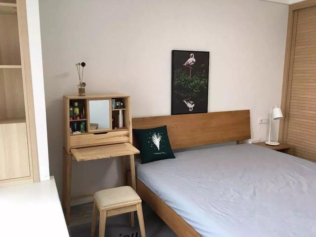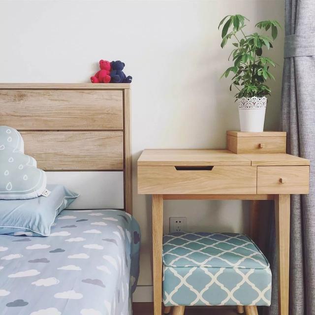原木色梳妝臺(tái),即可充當(dāng)電腦桌;