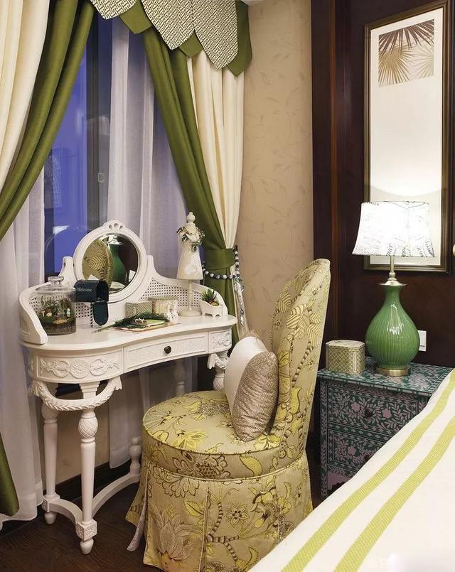 是的,把梳妝臺(tái)放在床的側(cè)邊也是個(gè)不錯(cuò)的選擇,剛好挨著窗邊,光線也不會(huì)昏暗;