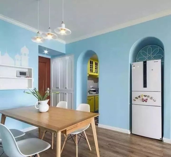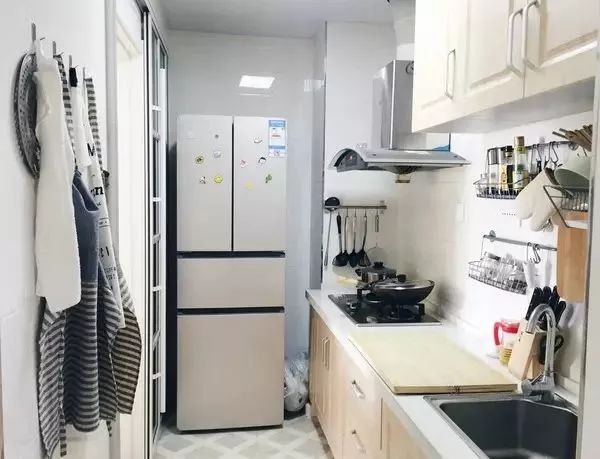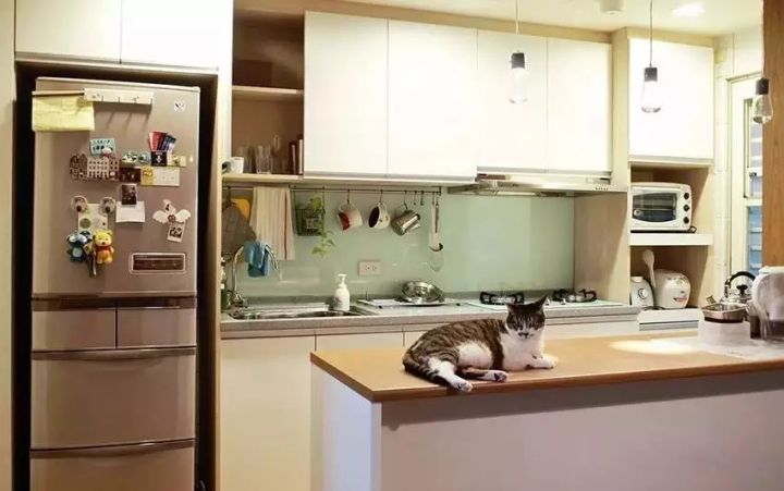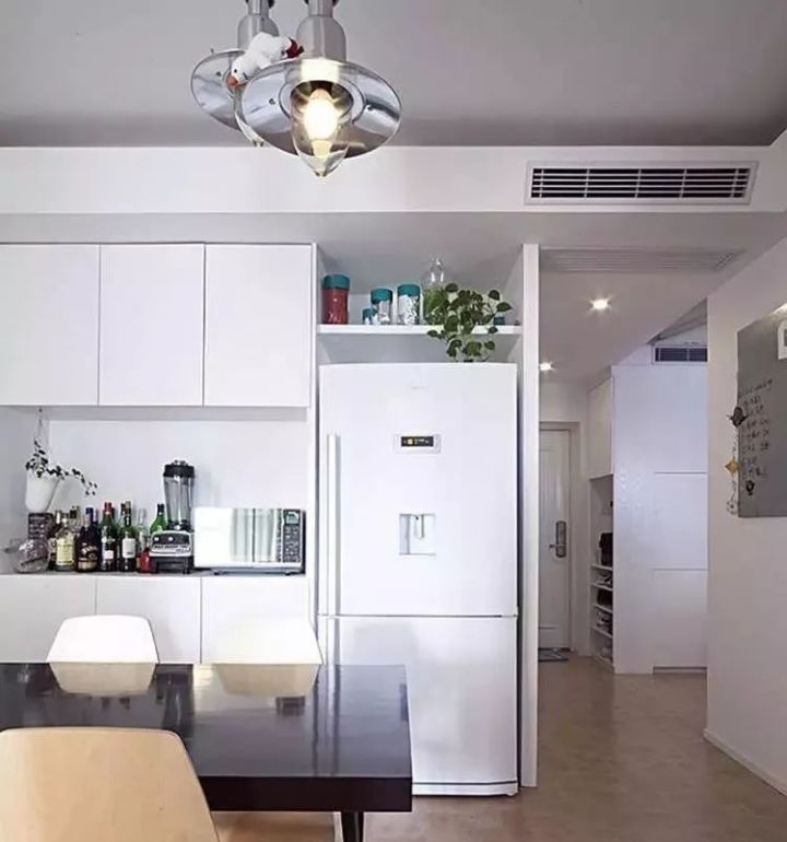 把冰箱“安裝”到櫥柜里面去,這就要求定做櫥柜的時(shí)候,提前為冰箱預(yù)留出尺寸,看到下圖了嗎?冰箱顯得會(huì)有點(diǎn)唐突,但好在櫥柜有點(diǎn)連貫性,也可以解決一部分收納問(wèn)題。如下面幾個(gè)案例: