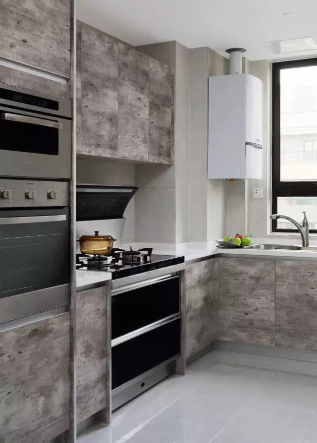 或者你更喜歡復(fù)古風(fēng)、工業(yè)風(fēng)的設(shè)計(jì),也可以考慮做舊處理的木色、水泥色、紅磚墻等這樣比較特殊的設(shè)計(jì),同樣可以讓廚房變得很酷、很帥氣。